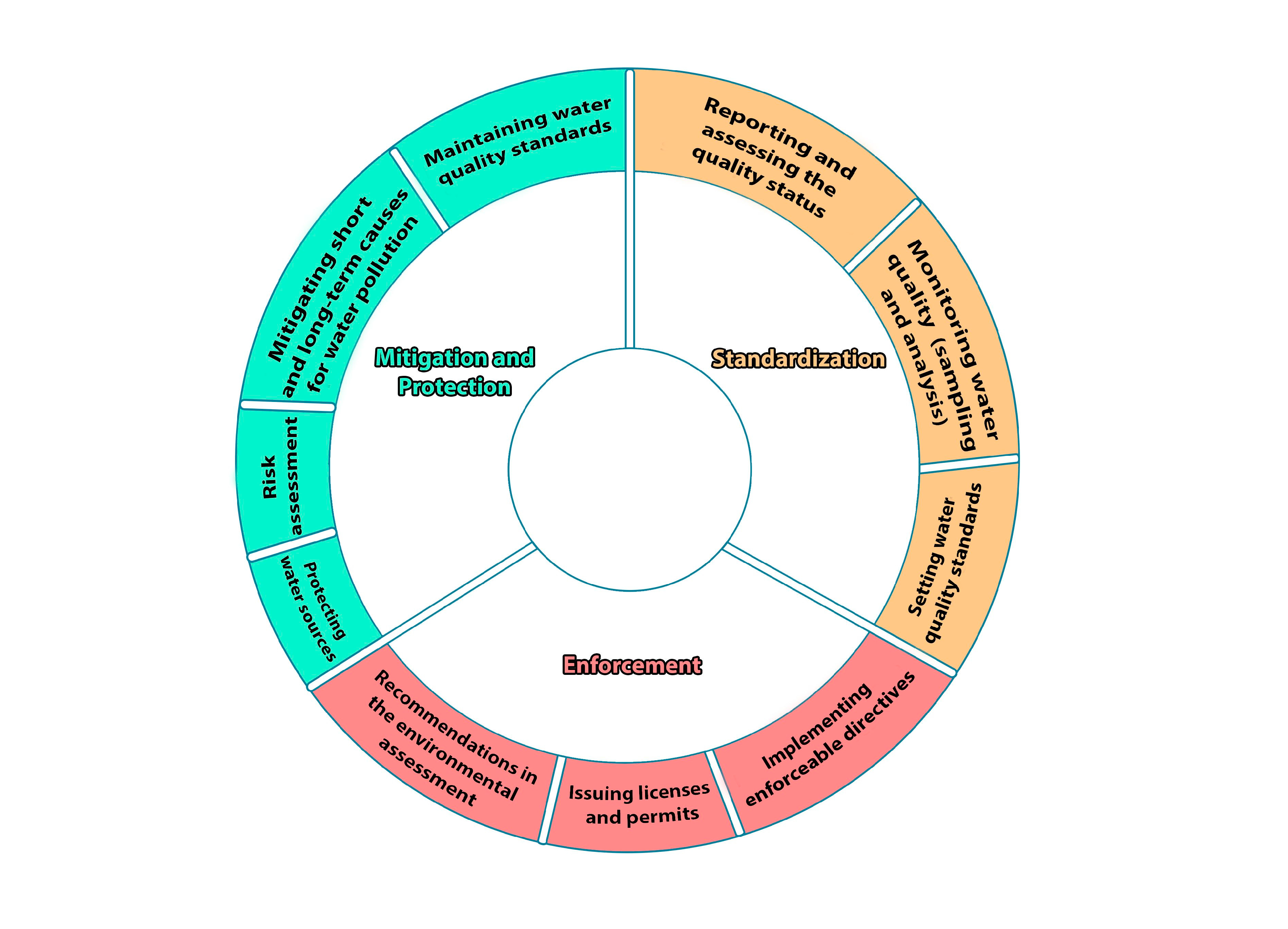 The management of water quality is an important part of natural resource governance. Assurance of water quality therefore requires formulation of the regulatory framework and institutional process. Water quality-related problems and their management are mainly recognized as local responsibilities in Integrated Water Resources Management (IWRM).
